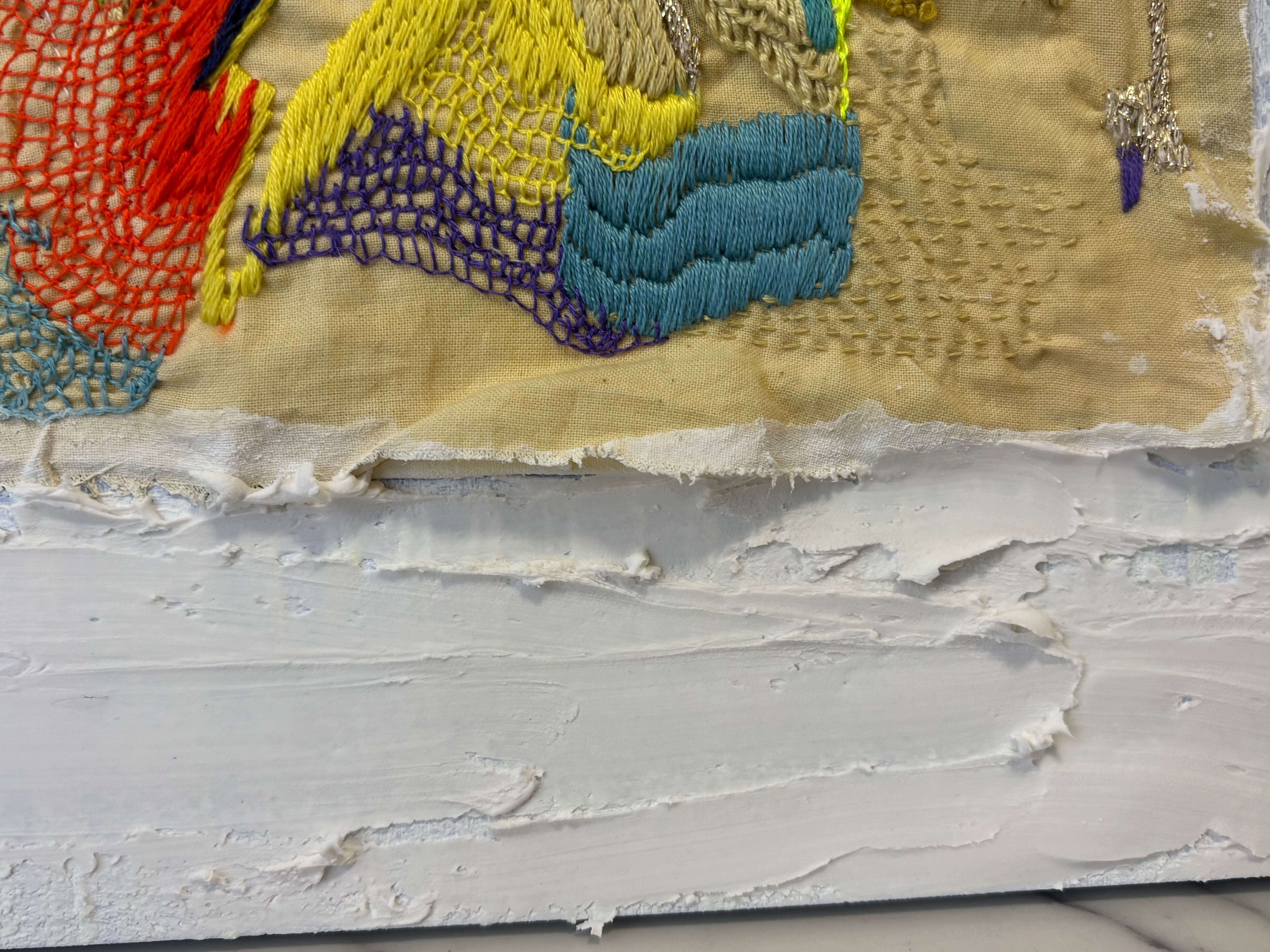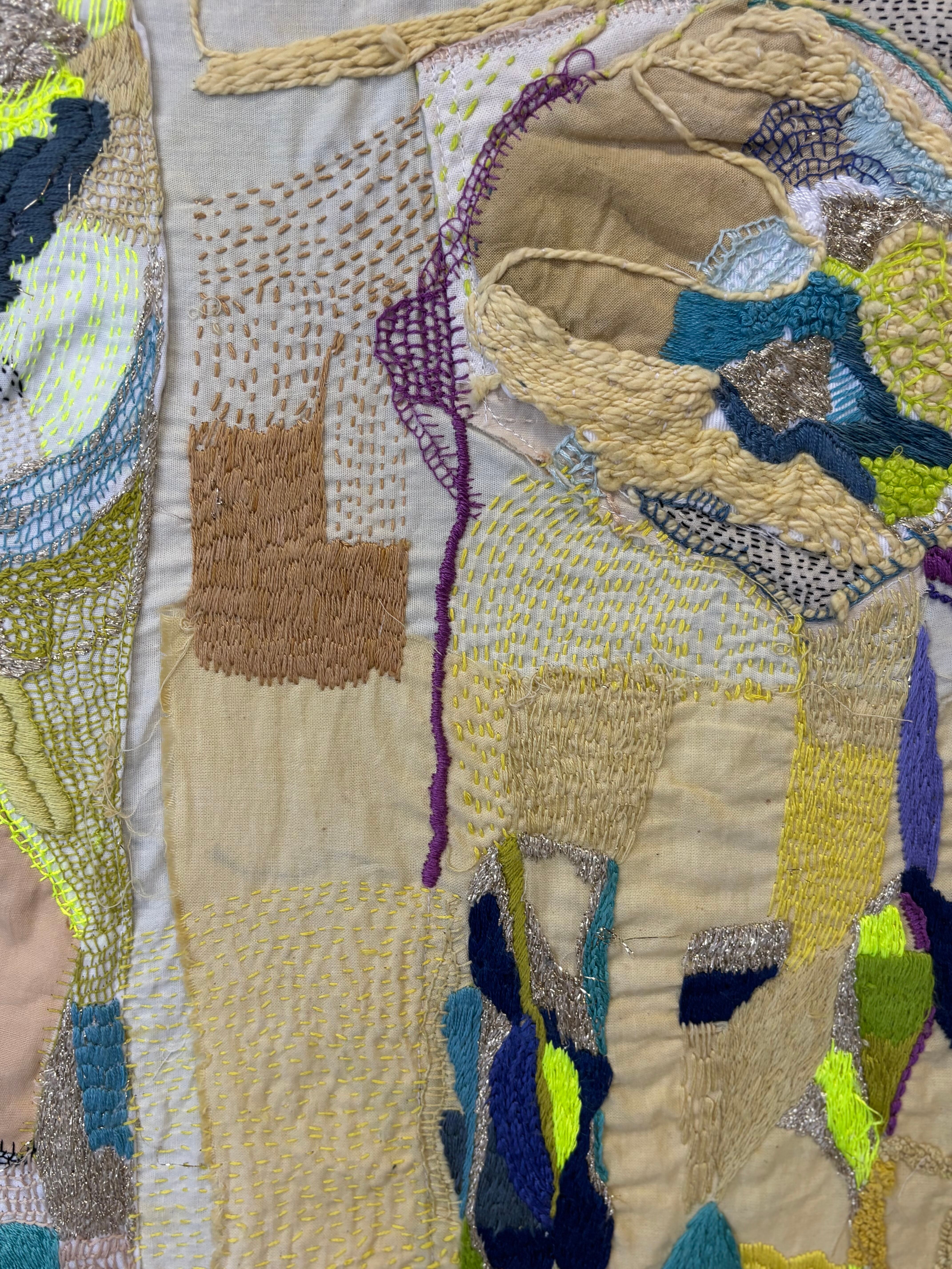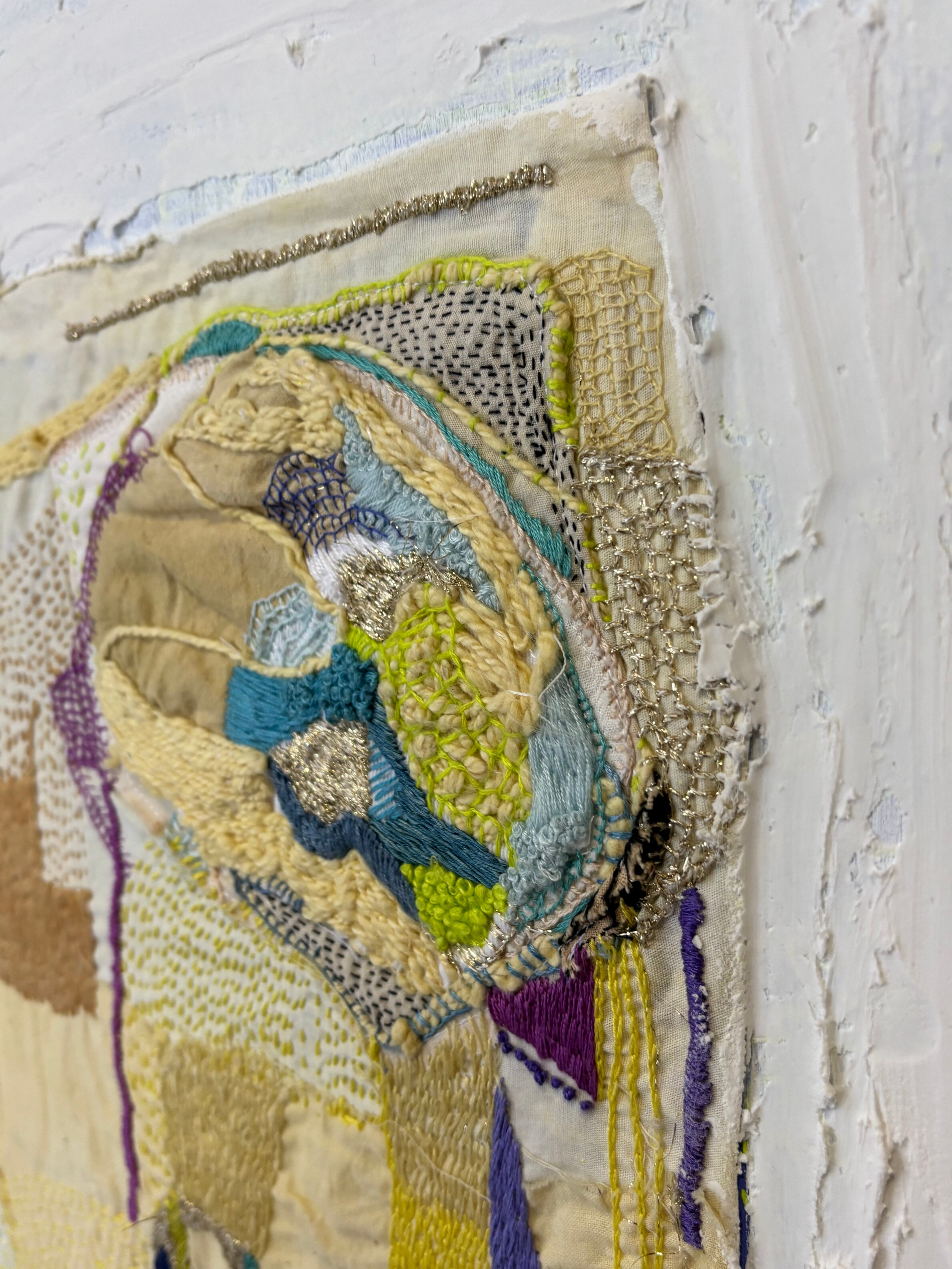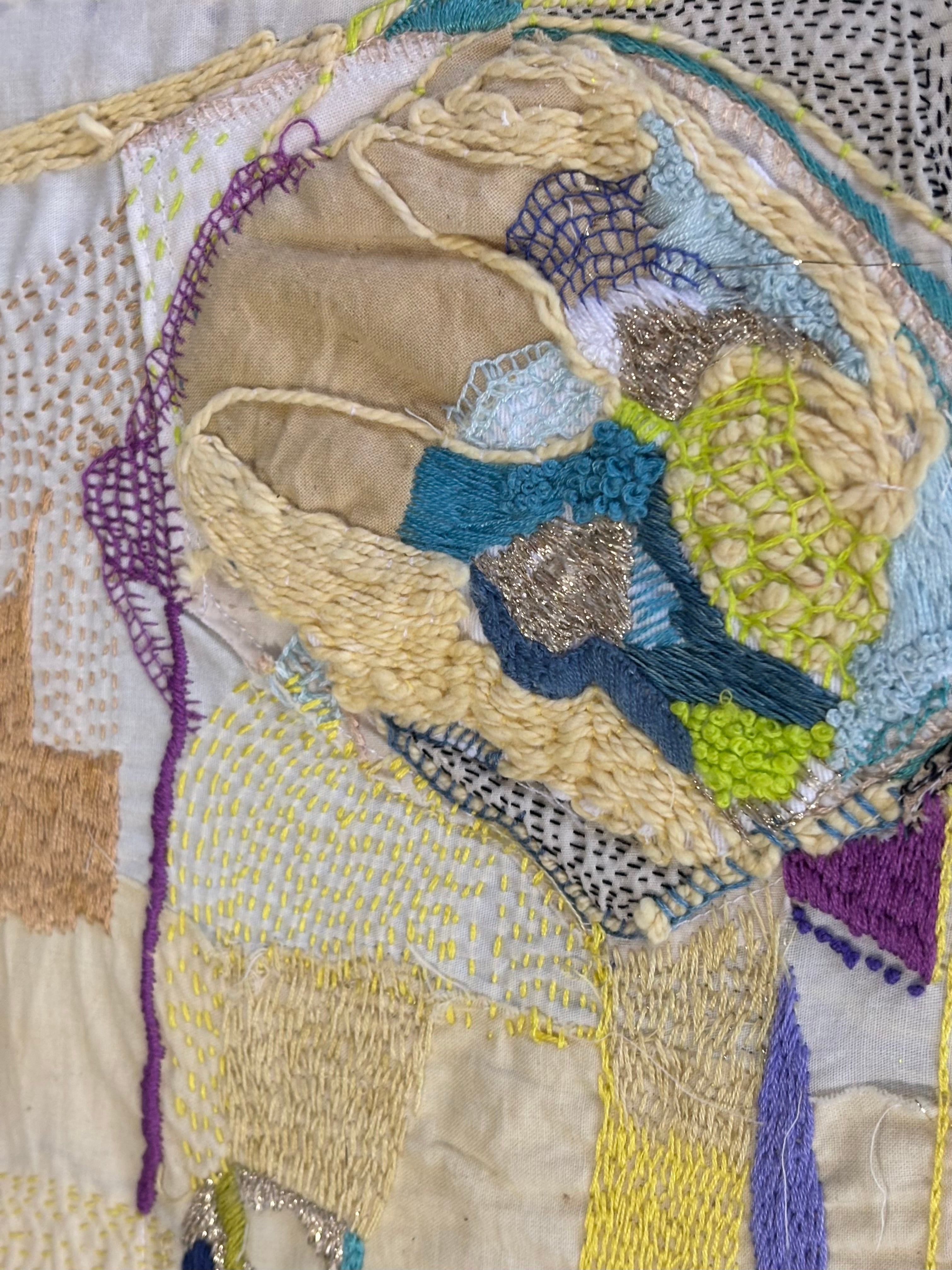 ひと針、ひと針に、静けさと色の対話を込めたテキスタイルアート。